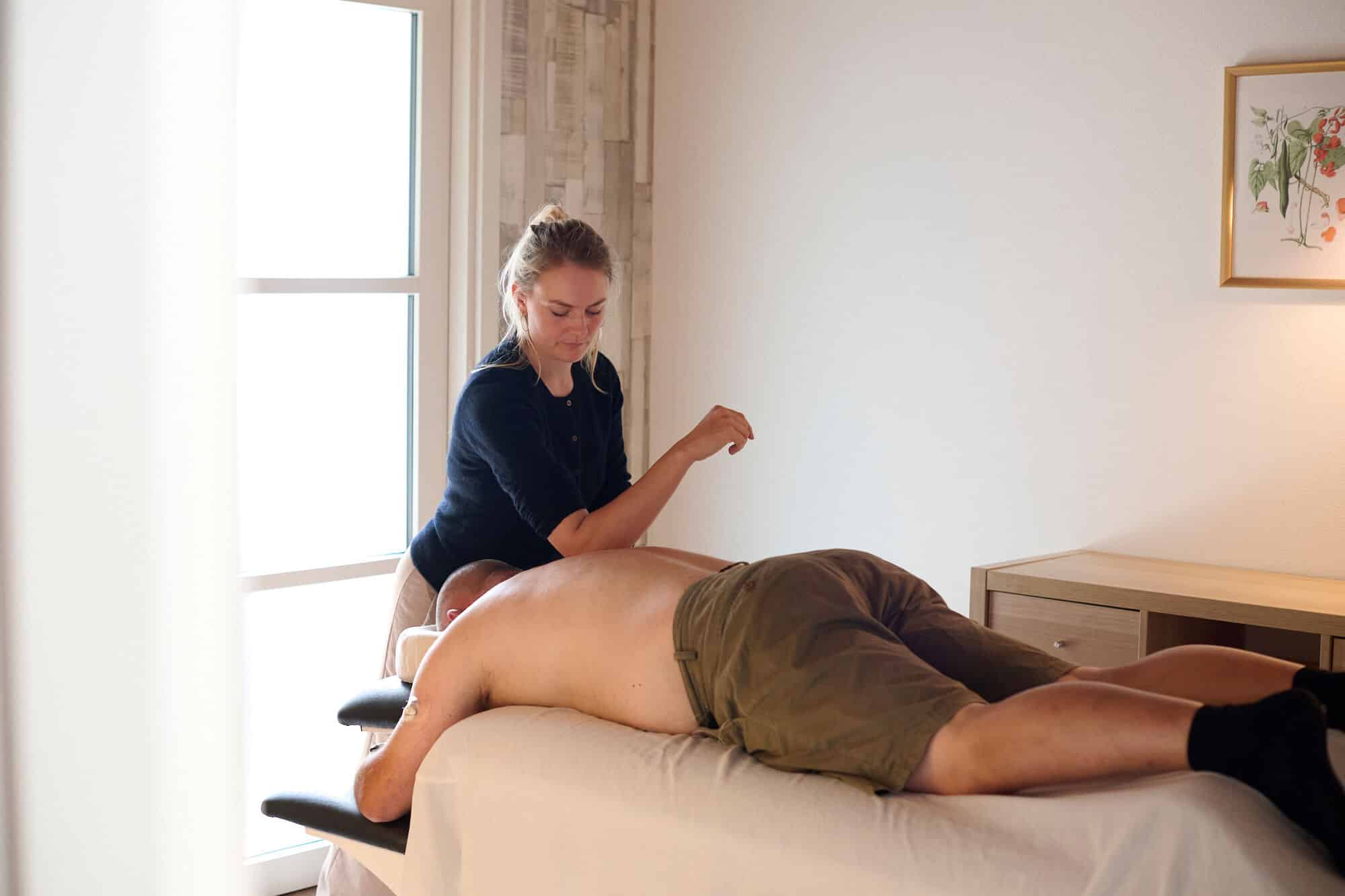 Om du skal have den ene eller den anden form for massage, så booker du bare, og så taler vi om, hvad du har brug for, når du kommer.